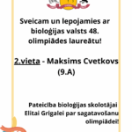 Sveicam un lepojamies ar bioloģijas valsts 48. olimpiādes laureātu!