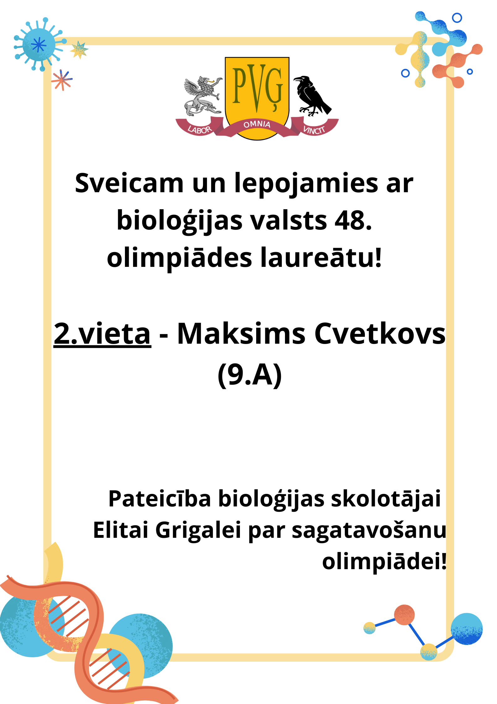 Sveicam un lepojamies ar bioloģijas valsts 48. olimpiādes laureātu!