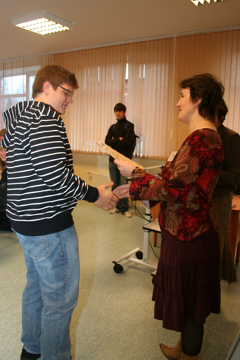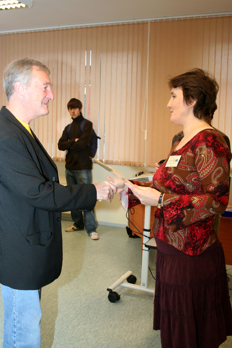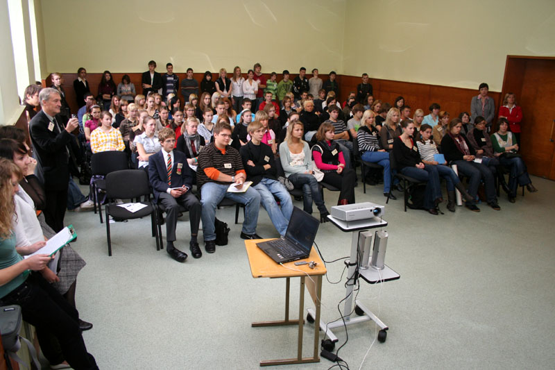 Profesors Krūmiņš vada nodarbības Preiļu rajona jaunajiem fiziķiem un fizikas skolotājiem (29.10.2008)