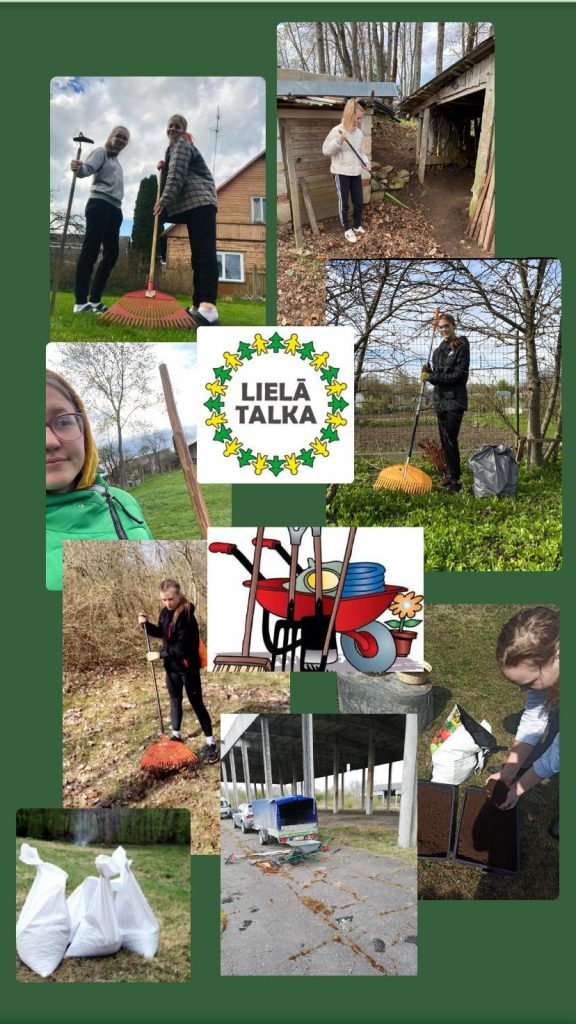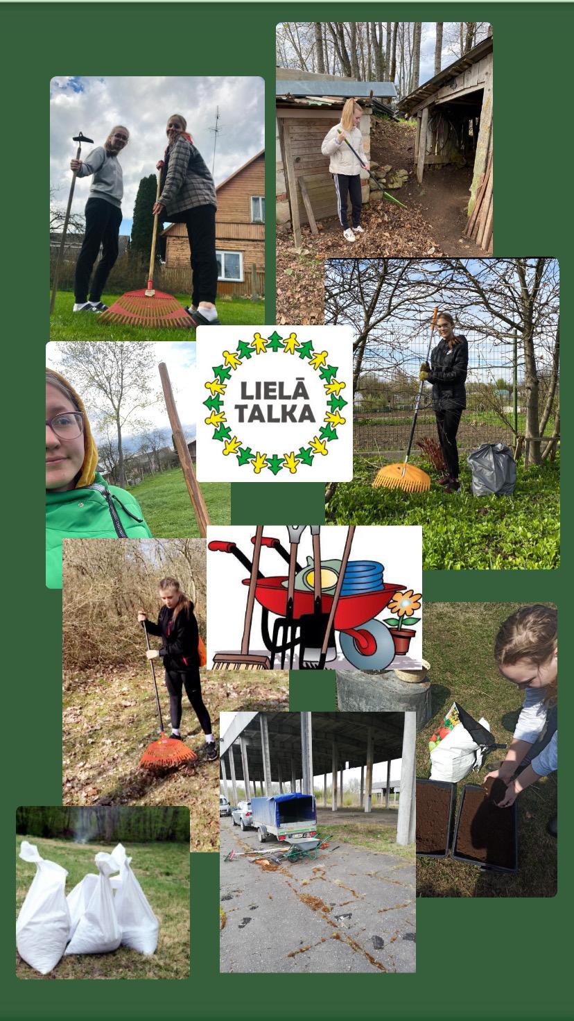 Mēs, 11.D, 24. aprīlī devāmies talkot, katrs izvēloties savu teritoriju, kuru vēlējāmies sakopt. Cītīgi talkojot padarījām zaļāku ne tikai mūsu zemīti, bet arī nodarbojāmies ar fiziskām aktivitātēm, kas šajā tehnoloģiju laikmetā ir ļoti nozīmīgi. Lai arī šīs epidemioloģiskās situācijas dēļ katrs talkojām atsevišķi, beigās dalījāmies ar panākumiem, kurš ko nu ir paveicis, šī dalīšanās palīdzēja mūs saliedēt un vairot prieku mūsu vidū.
