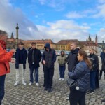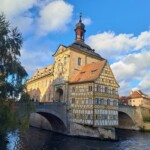 Bramberga – pilsēta uz septiņiem pakalniem, kas vienīgā saglabājusi viduslaiku Vācijas raksturīgo apbūvi un Otrajā pasaules kara laikā netika izpostīta. Šeit mums bija iespēja nogaršot vāciešiem raksturīgos ēdienus un vienīgo Vācijā kūpināto alu – bezalkoholisko. Uz vietējās virtuves restorāna fasādes mūs izbrīnīja alus darītāju zvaigzne – tā izskatās tāpat kā Dāvida zvaigzne, taču tā tika lietota kā alus darītāju aizsargsimbols. Pēc garšīgās ēdienreizes, kas visiem ļoti patika, devāmies apskatīt Brambergas vecpilsētu, gleznoto rātsnamu, kurš atrodas Rēgnicas upes vidū, tiltus, kas savieno abas pilsētas puses un Sv. Pētera un Jura katedrāli. Pilsētas ielās sastapām arī koka bruği un mazas iemūrētas ebreju piemiņas plāksnītes. Savukārt lielākā daļa vecpilsētas apbūves ir veidota fahverkas veidā – pirmais ēkas stāvs ir no mūra, bet pārējie ir apmesti, lai izskatītos mūrēti. Abās pilsētās atzīmējām, ka vietējie iedzīvotāji ir ļoti sportiski, ir daudz skrējēju un velobraucēju. Gribam pateikt paldies abiem gidiem par interesantām ekskursijām un labiem laikapstākļiem, kas deva iespēju mums to visu izbaudīt.