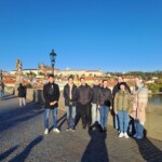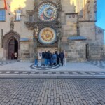 Pirmais pieturas punkts mūsu ceļā uz Strasbūru bija Čehijas galvaspilsēta Prāga. Sākotnējais ceļš bija viegls un interesants, tomēr netālu no Prāgas mēs iekļuvām neparedzēti ilgā sastrēgumā. Līdz ar to mūsu plānotā pastaiga pa naksnīgo Prāgu diemžēl izpalika. Mūsu naktsmītne atradās pilsētas centrā. Pa tās logiem vērojām Prāgas galveno dzelzceļa staciju, senās celtnes, sajutām vēsturi. No rīta gan radās iespēja aplūkot dažus no ieplānotajiem objektiem. Skolēni to arī izmantoja – kopā ar skolotāju Jeļenu no Daugavpils un skolotāju Ināru devās nelielā rīta pastaigā pa pilsētu. Rīts bija saulains un skaists, varēja izbaudīt Prāgu visā tās skaistumā. Redzējām vēsturiskus, tūristu iecienītus objektus – Kārļa tiltu, slaveno Orloj pulksteni. Apmeklējām skaisto vecpilsētas laukumu.