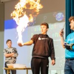 Pasākuma beigās skolēni skatījās un klausījās Raita Streiča piedāvāto eksperimentu šovu, kā arī piedalījās aizraujošās aktivitātes, “FIZMIX” nodemonstrēja, kā izdzēst un iegūt atpakaļ neredzamo tinti, kā arī demonstrēja eksperimentus ar slāpekli, uguni un elektrību, atklājot dažādas fizikālās likumsakarības.