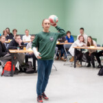 Nākamajā zināšanu un spēju testā tika uzdoti atjautības jautājumi, atbildot pareizi, skolēniem bija iespēja mest grozā bumbu, par ko varēja iegūt papildus punktus savai komandai.