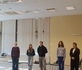 Elza Lazdāne, Kate Trūpa, Aurēlija Vinogradova, Anna Martinova (8.b.kl.) un skolotāja Ruta Vjakse