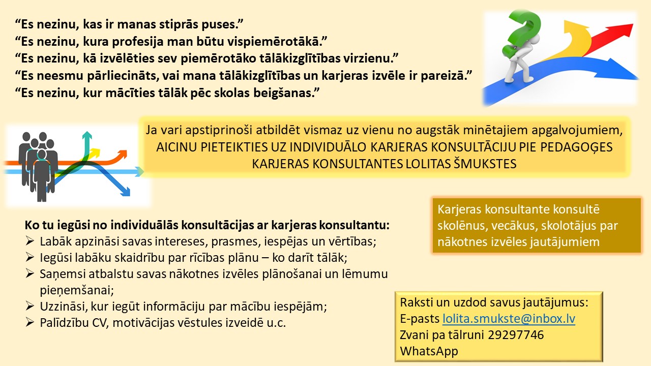 • noderīgas būs idejas karjeras pasākumiem,